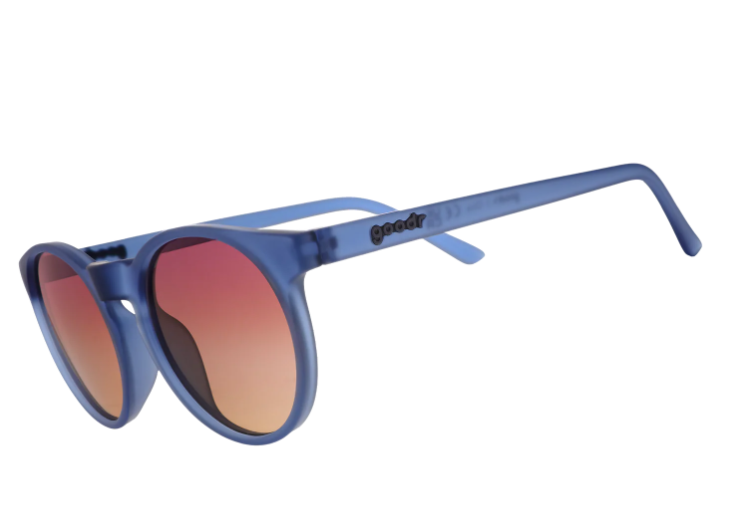 "Why are we here? Why am I hungry? Did I make eye contact with that stranger?" Ponder these existential questions in style with translucent dark blue Circle Gs featuring gradient purple-yellow ocean lenses, and soak up the sweet embrace of the abyss!