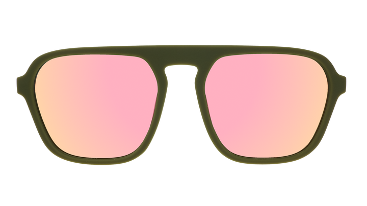 How many Dirty Martinis does it take before you start seeing time dilation?! With these dark green Retro Gs and their light pink reflective lenses, you might be the first to crack the spacetime continuum with the perfect Dirty Martini in hand!